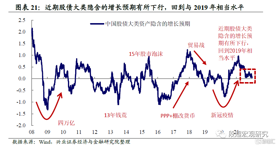 整体而言,股债大类资产反映出的经济增长预期、宽松预期变化与经济和政策变化高度相关,且有时略为领先,具有较高的参考价值。因此,我们进一步将历史上不同时期的增长预期和宽松预期按相同方法进行了拆分。