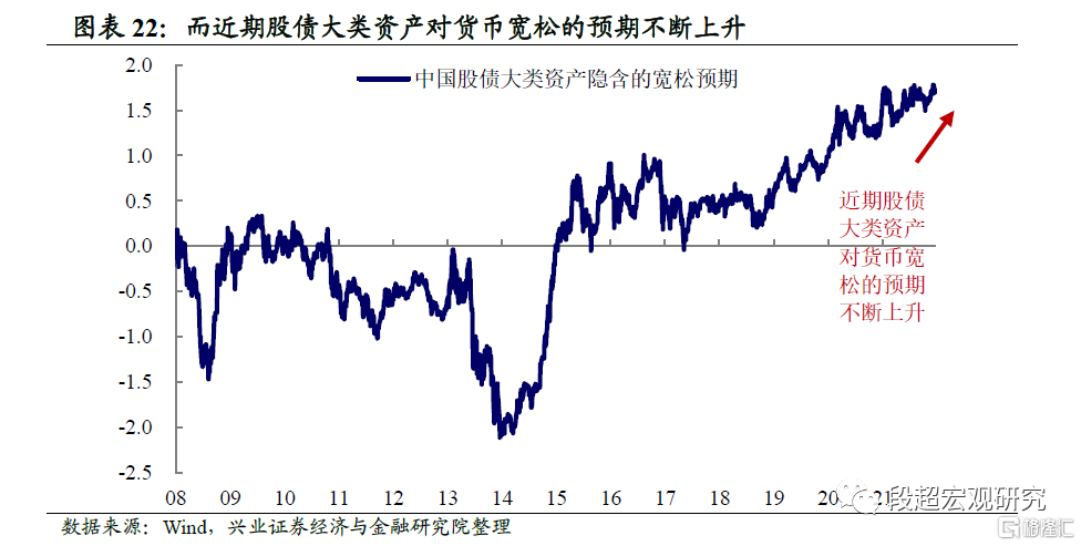 近期股债大类资产对货币宽松的预期不断上升。从另一个角度来看,股债大类资产表现隐含的货币宽松预期自2019年以来不断上升。近期降准+降息政策落地之后,12月份市场隐含的货币宽松预期还在进一步上升。与我们前文的分析一致,在经济面临三重压力的背景下,“宽货币”的确定性较高,2022年可能进一步看到货币宽松政策的落地。