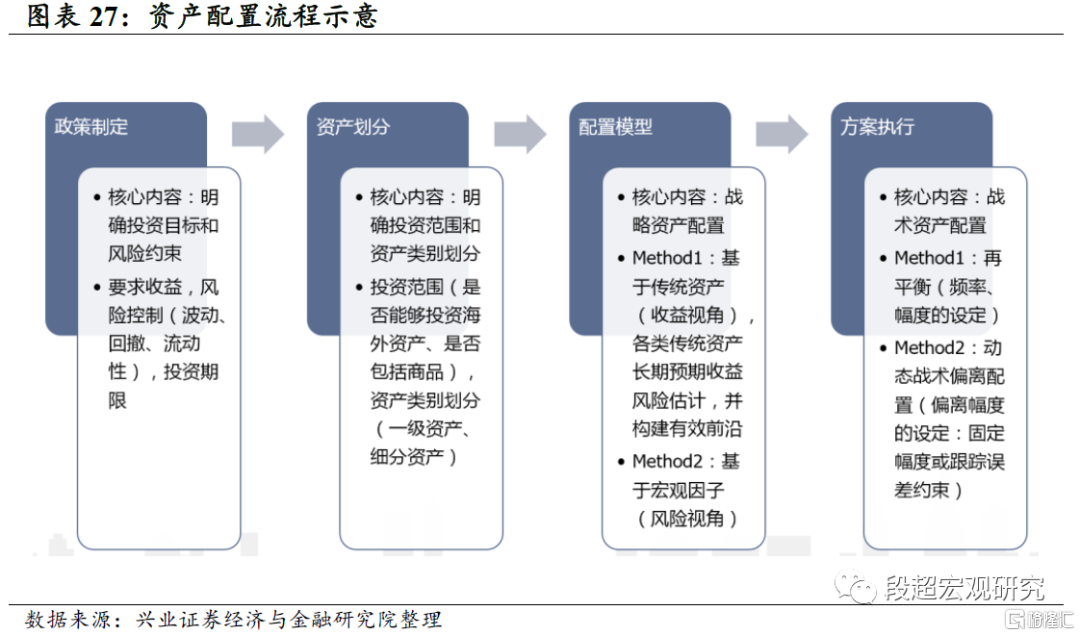 综合来说,战略配置的环节一方面是对各大类资产理性预期收益率的合理估计,另一方面也是为形成合理的参考组合打下坚实的逻辑分析预判基础。反过来,对于已经设定了战略配置基准的投资者,也可以反向检验当前组合配置权重是否跟定性分析的结论能够吻合。