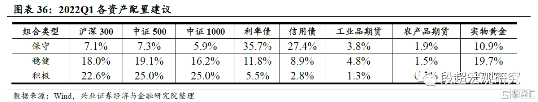 对2022年Q1大类资产配置的展望:利率债>中盘股>大盘股>小盘股>农产品>信用债>黄金>工业品>现金。