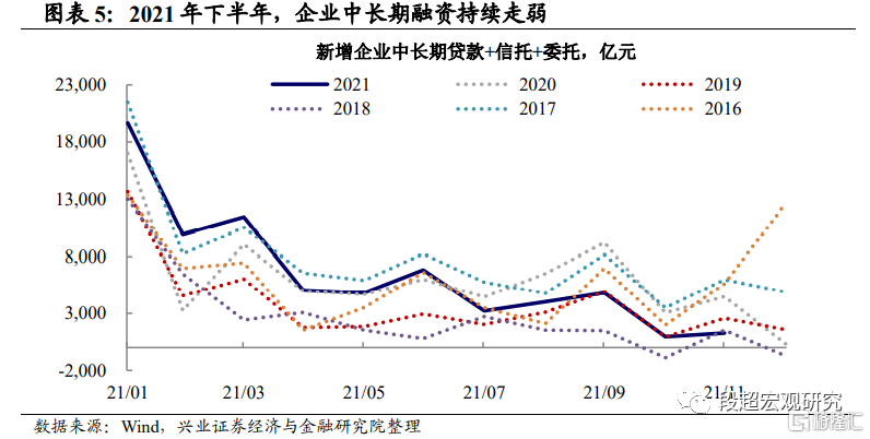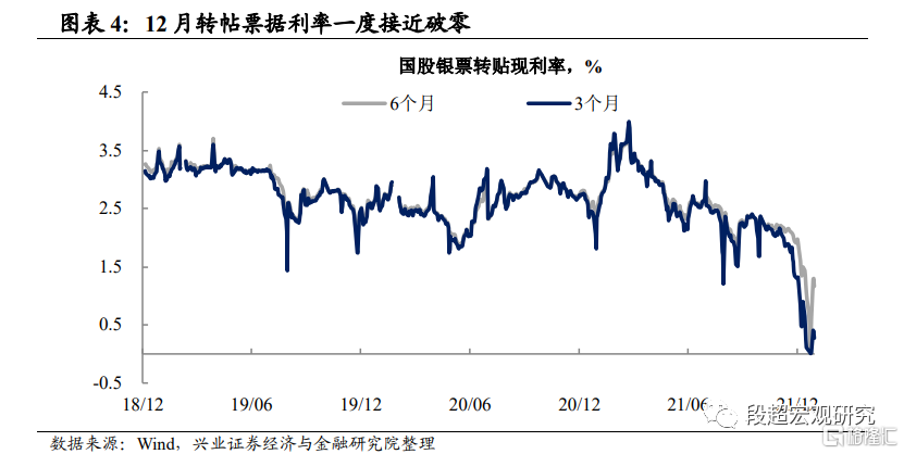 2021年Q4以来,实体经济融资需求整体偏弱。从企业融资的角度来看,下半年以来,一方面,企业融资需求受到压制,另一方面,金融机构风险偏好也明显降低,企业中长期融资明显走弱,而银行借助票据融资冲量的需求持续强于季节性。即使考虑到接近年底时,银行有留存放贷项目保证来年“开门红”的情况,12月短端转帖票据利率一度接近破零也说明银行借票据冲量的需求远超往年,指向银行今年放贷储备项目不足的情况较为严重。