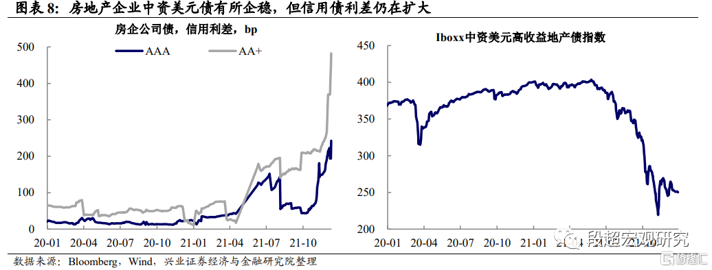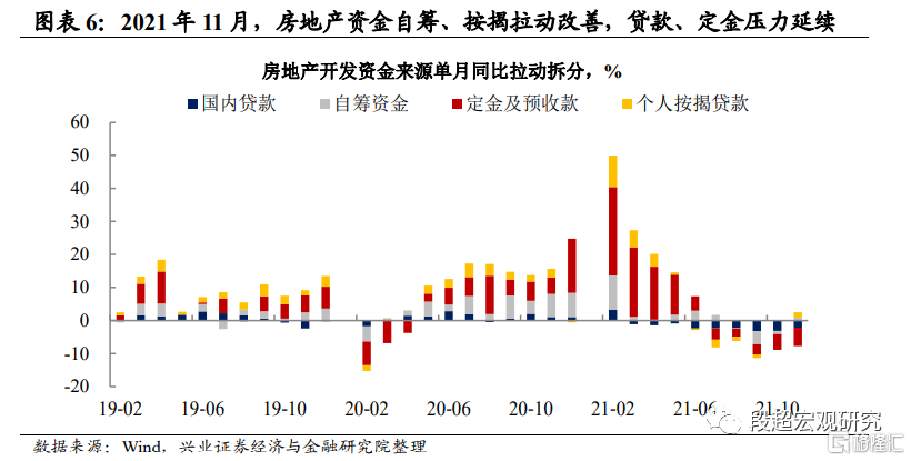 房地产资金压力略有改善,但压力仍在持续。房地产方面,从房地产开发资金来看,11月房企资金压力有一定边际改善,个人按揭贷款和自筹资金同比转正。但正如我们在报告《宏观2022年年度策略:新“新常态”》中所提示的,本轮债务问题的背后实际上是经济转型,地产投资增速趋势性回落,中国将进一步摆脱投资驱动。对比20世纪90年代国企债务问题的处置经验,其初期经历了几年的中央层面、地方政府层面以及金融机构之间多方博弈。而当前负债主体更为多元化、私企占比更高,这使得政府直接救助的阈值更高,因此本轮债务问题的处置将是一个复杂而漫长的过程。