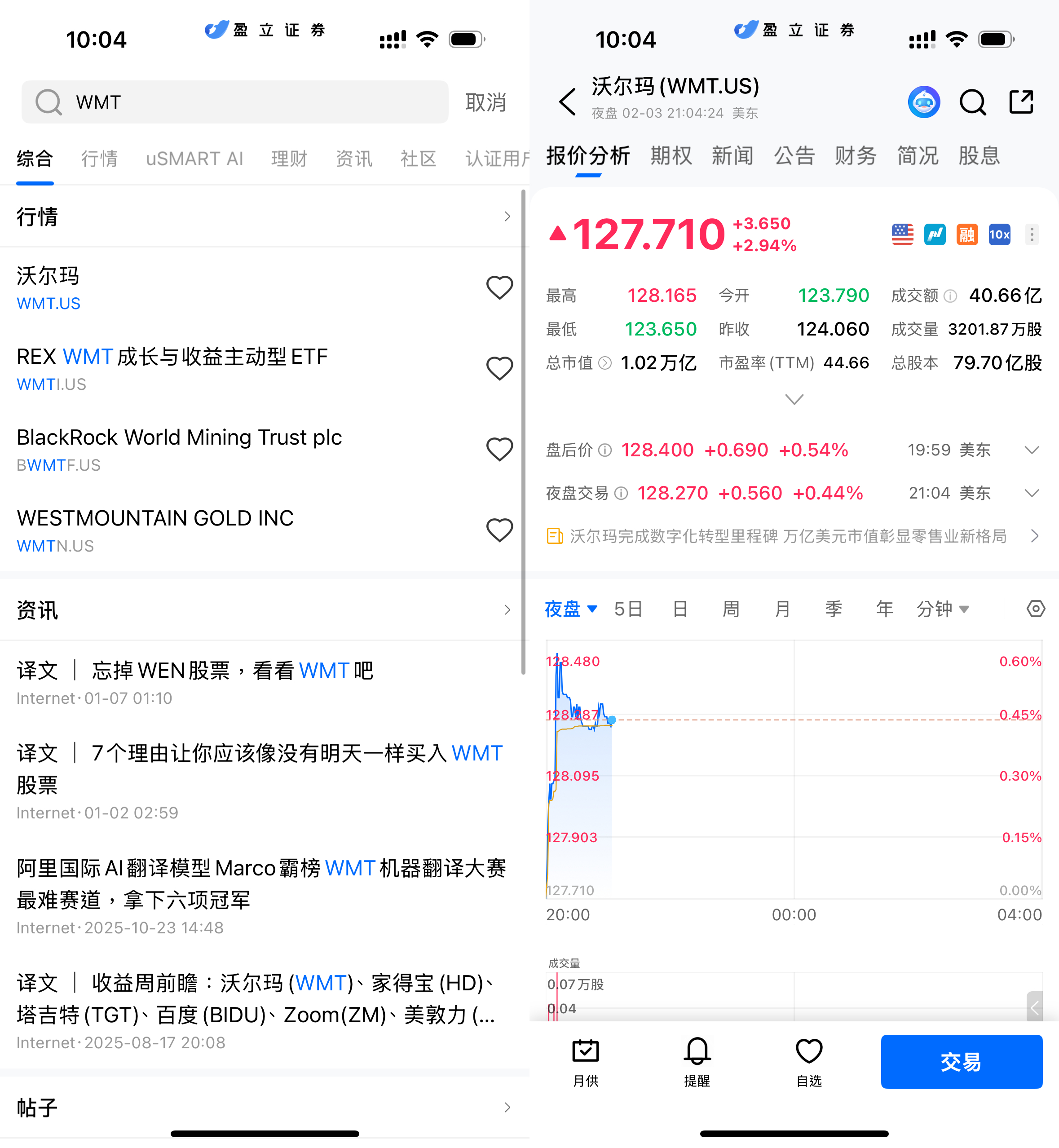 登入 uSMART HK APP 后,于页面最右上方点击「搜索」,输入标的代码(WMT.US)并进入详情页,了解交易详情与历史走势。点击右下角「交易」,选择交易类型,最后填写交易条件后送出订单即可。