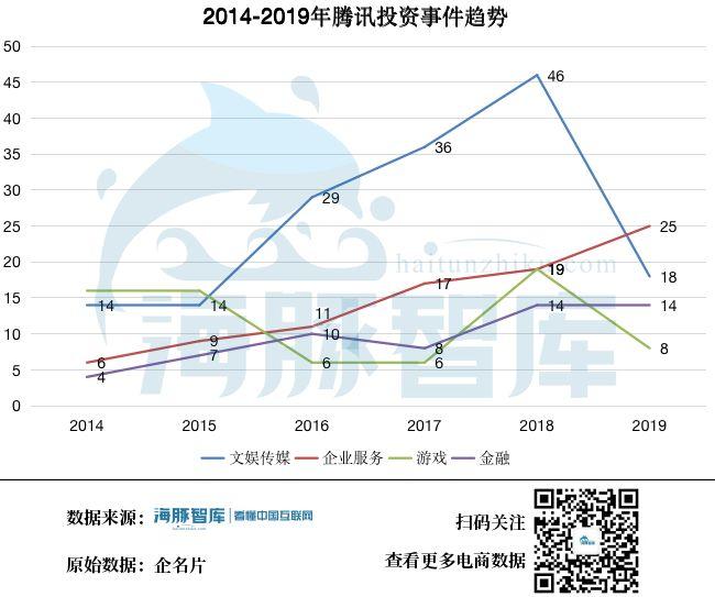 之前腾讯有多爱游戏和文娱呢?从2014年-2019年,这期间是腾讯文娱飞速发展的时期,腾讯一共投资了157起文娱传媒类项目,87起企业服务,71起游戏类项目。这是什么概念呢?要知道自腾讯基金成立起来,也就一共投资了167起文娱传媒项目,98起游戏项目。