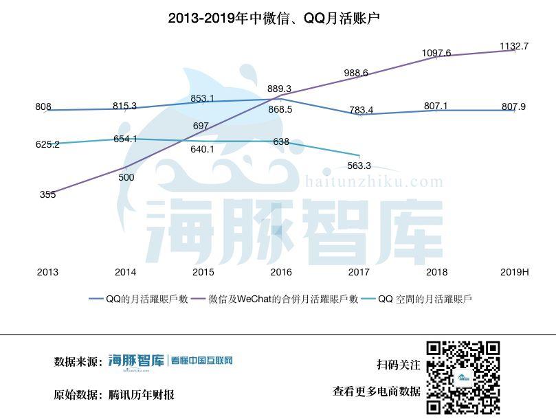 如果说腾讯的护城河始于QQ,那么微信的出现就更加强化了腾讯的护城河,从13年开始,微信及Wechat的活跃用户飞速上升,截止到2019年中期,已经超过11亿人在用,微信的游戏和文娱发展就是基于这一流量红利形成。