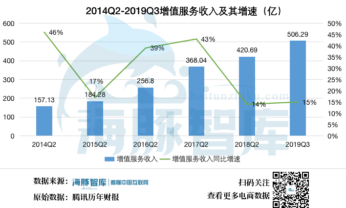 财报显示,腾讯增值服务的收入同比增长15%至人民币 506.29 亿元。其中,腾讯游戏收入达到了286.04亿元,营收占比为29%。而金融科技及企业服务收入为人民币168亿,同比增长36%,成为新的亮点。