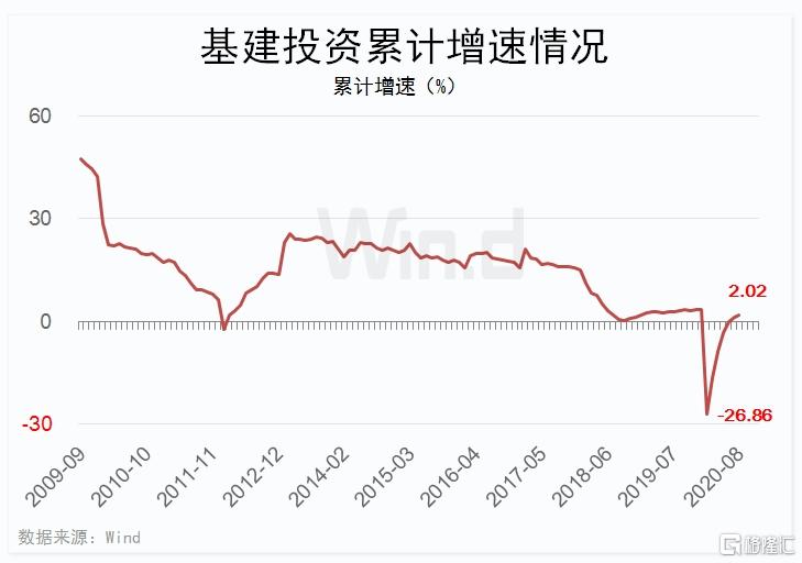 2、基建方面,1-8月份基建投资累计同比增速2.02%,增幅比1-7月份提升0.83个百分点。