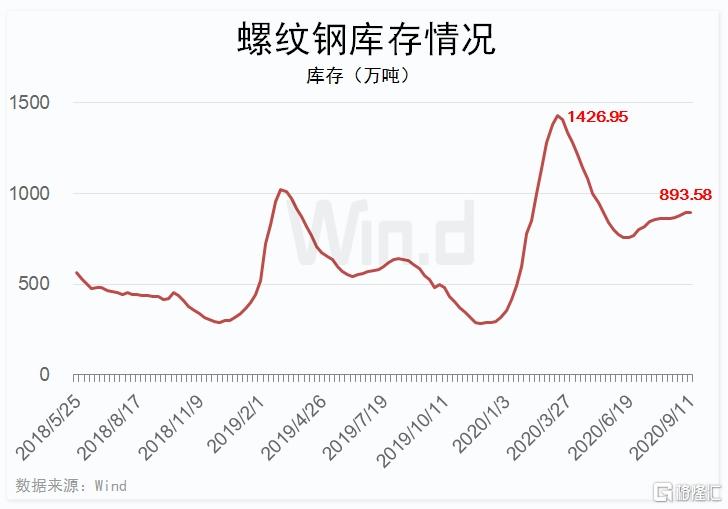 值得注意的是,钢材库存方面,Wind梳理显示,最新一期螺纹钢库存报893.58万吨,连续四期攀升,并创5月中旬以来新高。
