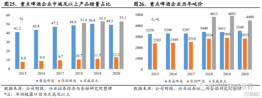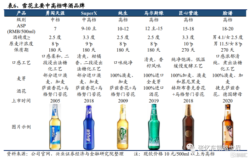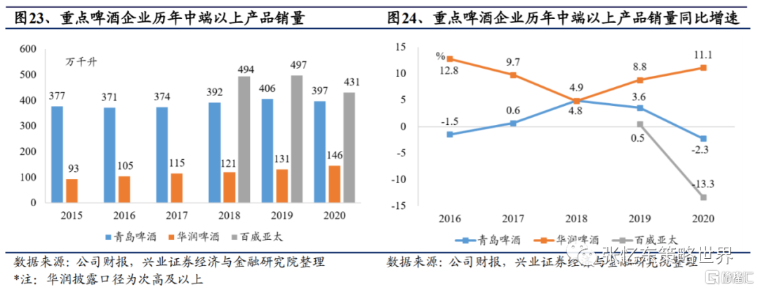 根據興業證券海外研究團隊分析預測,以華潤啤酒為例,公司次高端以上產品銷量佔比13.2%,不及公司最大核心單品雪花的51.2%;但在銷售額方面,次高端及以上產品的銷售額超35%,超過雪花的29.6%,高端化戰略成效明顯。