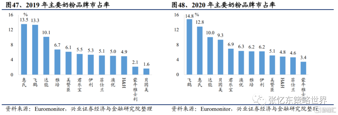 截至 2020 年底,飛鶴取代惠氏成為中國市場主要奶粉品牌市佔率第一名。