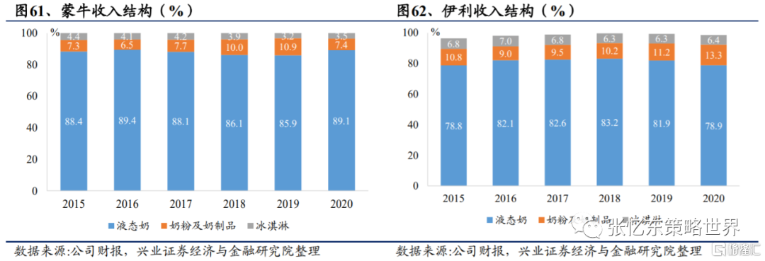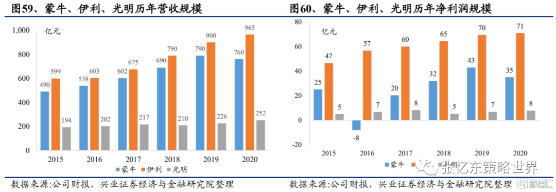 2021原奶價格上漲,看好行業龍頭成本優勢。在奶牛飼料成本和原奶供應成本持續上漲雙重作用下,2021年原奶價格將温和提升。2020年,蒙牛各生產基地生產乳製品990 萬噸;伊利各生產基地生產乳製品1312 萬噸。但是,由於蒙牛和伊利具備穩定的奶源地和優質的原奶供應端,行業龍頭成本優勢明顯。行業龍頭穩定的奶源供應有利於產量及銷量的穩定,進一步利好龍頭業績穩定增長,也利於市場份額進一步向龍頭集中。