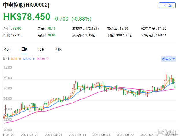 摩根大通:予中電控股(0002.HK)增持評級,目標價90港元