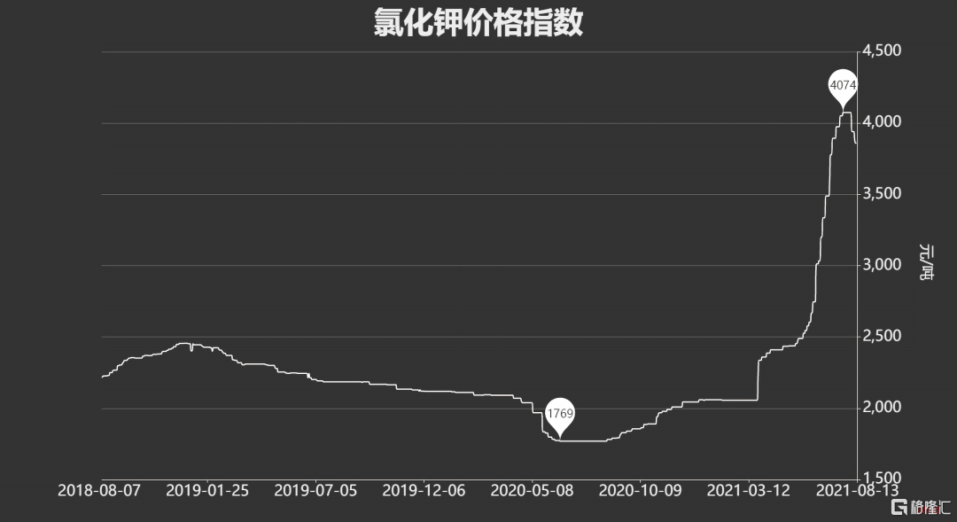 據中國無機鹽工業協會鉀鹽鉀肥行業分會常務副祕書長周月介紹,去年5月份時,國際市場上鉀肥價格還處於近10年的第二低值,此後開始緩慢抬升。特別是在今年2月份以後,在全球經濟復甦、糧食價格大漲、供應異常緊張等因素影響下,國際鉀肥市場漲勢兇猛。截至7月底,巴西大顆粒鉀肥到貨價直線攀升至650美元/噸,給國內市場帶來一定支撐。同期,在國內供應減少、庫存降到歷史低位的背景下,國內氯化鉀價格最高時超過4200元/噸,達到10年新高。