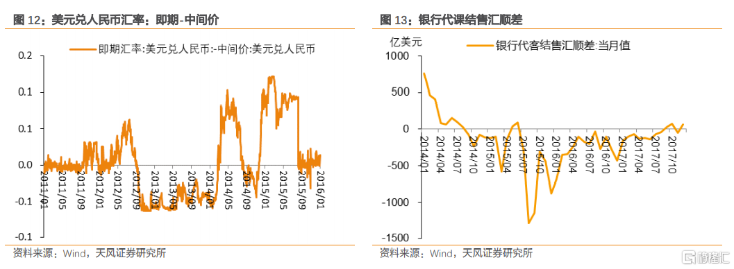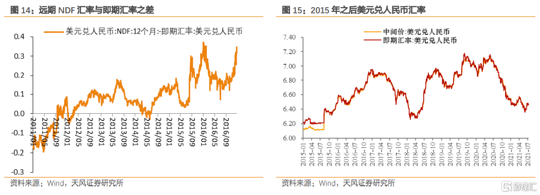 匯改之後,中間價與市場匯率之間的偏離得到校正,中間價的基準作用得到增強。匯改後,人民幣匯率貶值預期仍在進一步深化,具體體現在2015年8月銀行代客結售匯逆差明顯提升,明顯超出了正常水平,存在一定投機套利和順週期行爲;遠期人民幣匯率持續貶值。