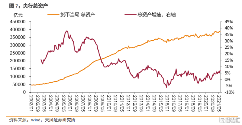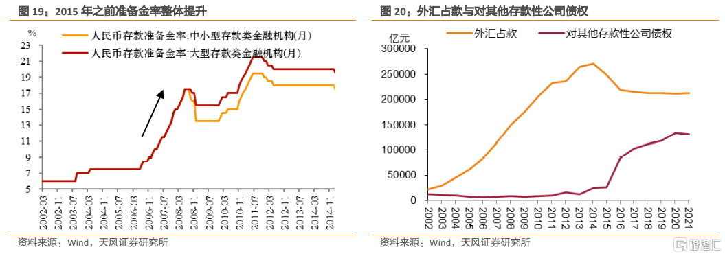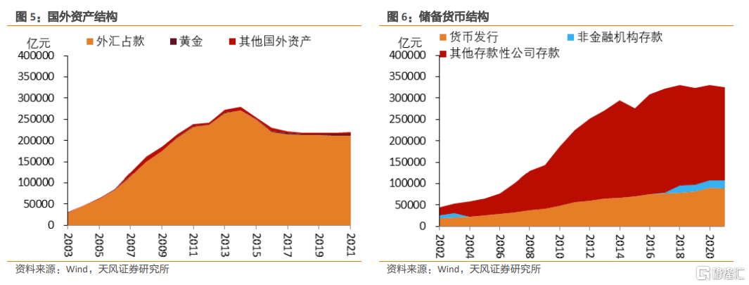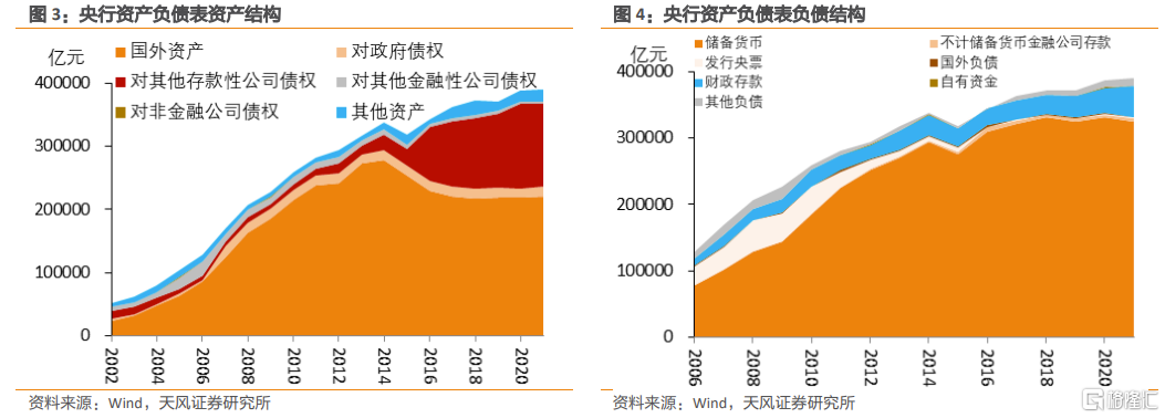與此同時,與資產端外匯佔款不斷增長相對應的是負債端儲備貨幣/基礎貨幣,兩者分別從資產和負債端推動了央行擴表。