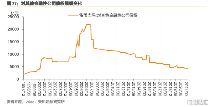 2008年之後,隨着上述特殊再貸款逐步償還,該科目規模逐步下降(中間只有2015年股災期間央行向中國證券金融股份有限公司提供了2000億元的再貸款)。