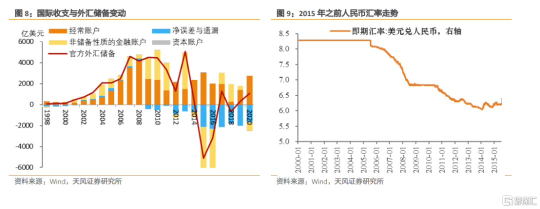 2001年我國加入WTO之後,國際收支下的經常賬戶和資本金融賬戶的順差增長加快,疊加強制結售匯制度推動外匯儲備快速增長。一方面,由於當時我國政府對擴大出口、引入外資的支持,對資本流出則有一定限制,結合當時實施的強制結售匯制度(強制結售匯制度是外匯短缺時代的產物,建立於1994年。當時要求企業的經常項目外匯收入,除國家允許開立外匯賬戶予以保留的外,均應全部賣給外匯指定銀行),大量外匯流入我國金融體系。另一方面,由於當時人民幣採用固定匯率制度,爲了維護固定匯率客觀上央行需要大規模購入外匯並投放人民幣流動性。這些因素都導致外匯儲備和外匯佔款的迅速增長(2007年一季度《貨幣政策執行報告》)。