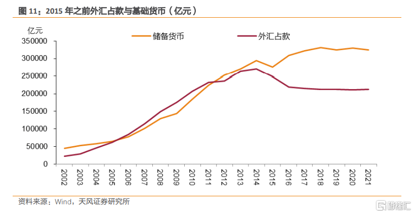 總結來看,2014年下半年之前我國外匯儲備/外匯佔款規模基本在持續增長,推動央行擴表。