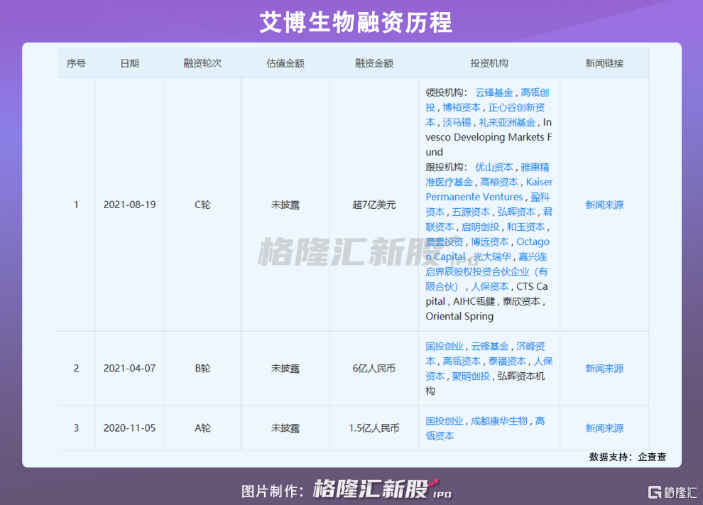 8月19日,艾博生物宣佈完成總額超過7億美元,即超過45億元的C輪融資,該筆融資總額刷新了中國生物醫藥企業IPO前單筆融資的紀錄。