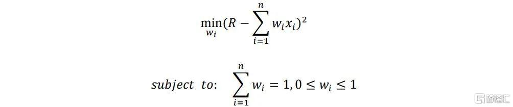 首先分析所選取示例基金的投資風格是否與與其標籤——“價值風格”一致。爲提高風格分析的時效性,這裏我們採取威廉·夏普於1992年提出的基於基金收益率的風格分析法來對示例基金進行風格分析。具體做法爲使用一系列風格指數收益率的線性表出去解釋目標基金的收益率,採取帶約束二次規劃的方法計算每個考察期目標基金在各風格指數上的偏好,具體表達式如下所示: