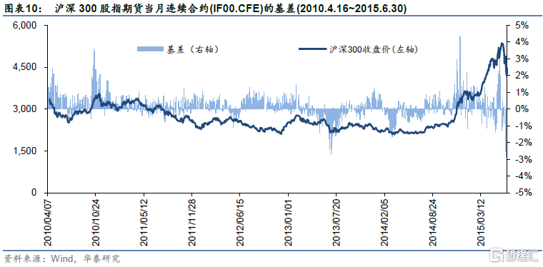 2010年後,一批曾就職於海外量化對衝基金的人才歸國。同時,擁有本土高校背景的人才也進入量化投資領域,爲市場提供了大量專業化人士。2010年4月16日,中國第一個股指期貨滬深300股指期貨(IF)掛牌上市,爲量化投資提供了較爲理想的對衝工具。在這個階段,以創業板爲代表的小市值股票漲幅持續超過主流股指漲幅,大部分股票市場中性策略採取持有一攬子小市值股票並用IF期貨做對衝的做法。此外這段時間內IF期貨大部分時間處於升水狀態(如下圖所示),使得股票市場中性策略可獲得IF期貨價格收斂的收益。