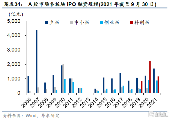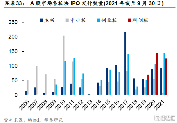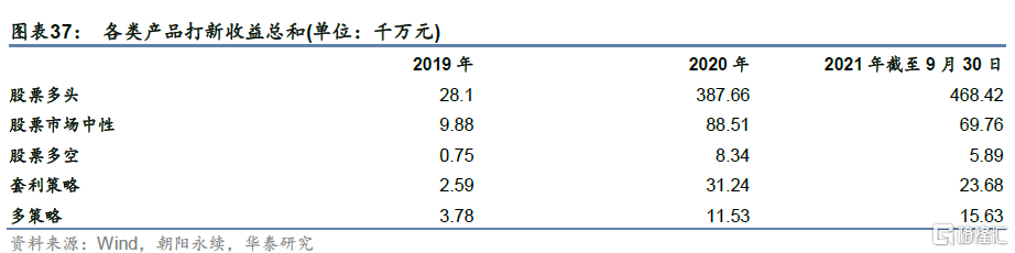 A 股市場的IPO長期存在較高的溢價,因此打新策略對基金組合提供了相對穩定的收益來源。受益於註冊制科創板與創業板的充分利好,2021年A股市場的IPO活躍度持續。本章將對量化私募的打新收益進行分析。本文的打新收益計算方法是:假定註冊制板塊的新股在首日以 VWAP 價賣出,非註冊制板塊在開板日以 VWAP 價賣出(首日未漲停則當日賣出),每年對各個基金的打新收益進行累計得到當年的打新收益。