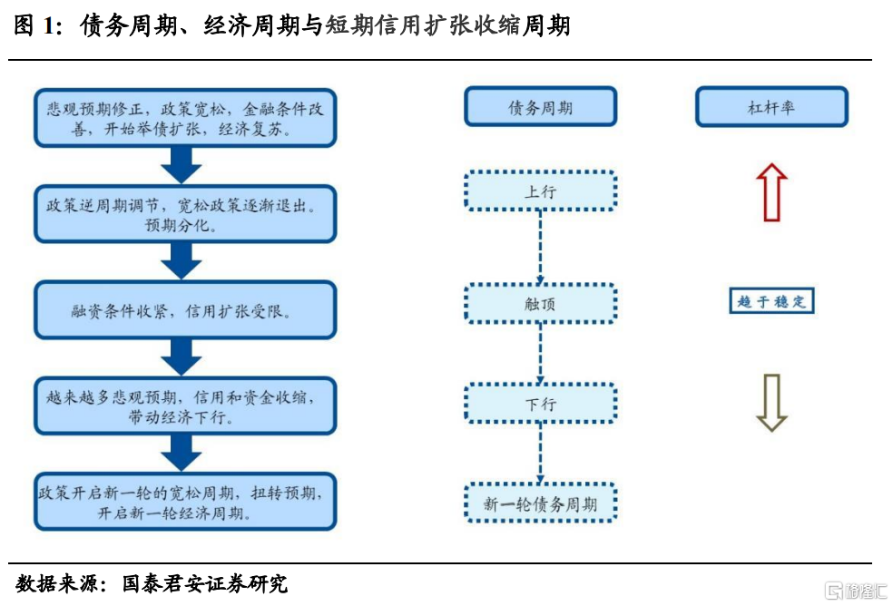 4)隨着融資條件收緊,信用擴張受到限制,債務週期觸頂,槓桿率趨於穩定。