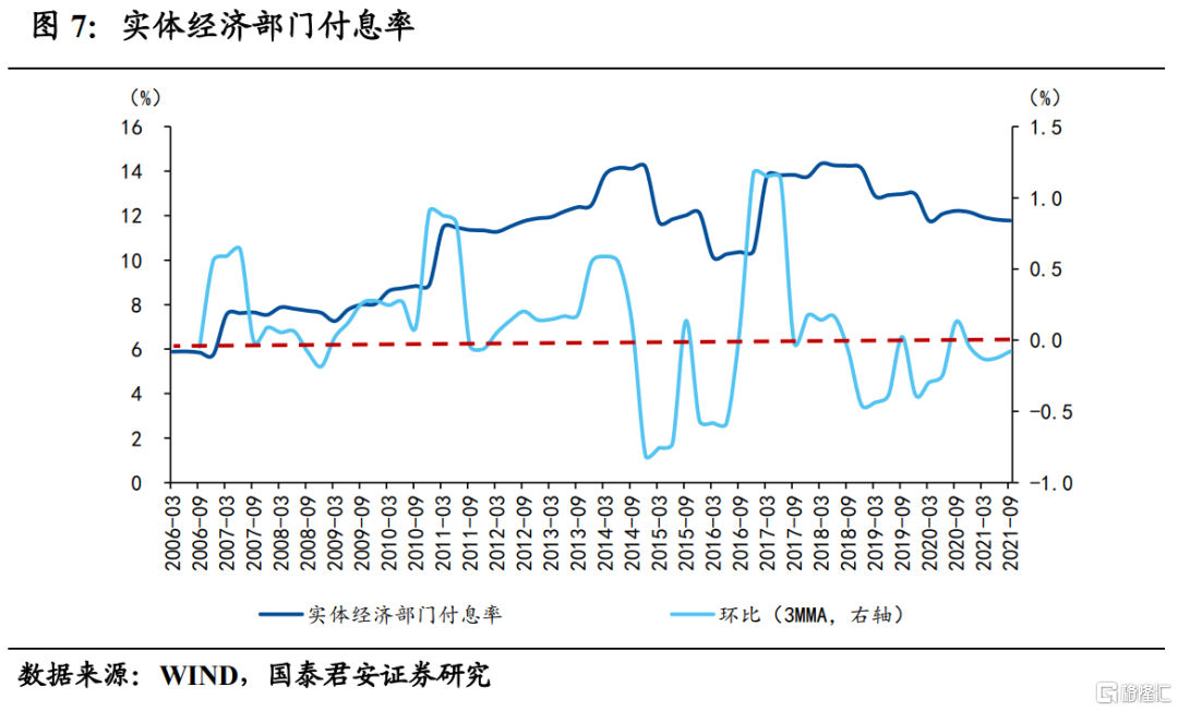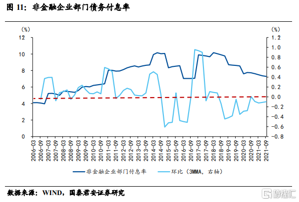 我們預計在2022年初債務付息率探底後債務付息率上修速度相對遲滯,這一底部狀態可能持續2022年,2023年有望進入債務擴張階段。