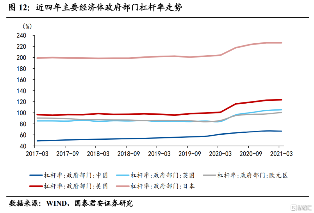 4.1 全球疫後政府槓桿率變化以及中國在其中的位置