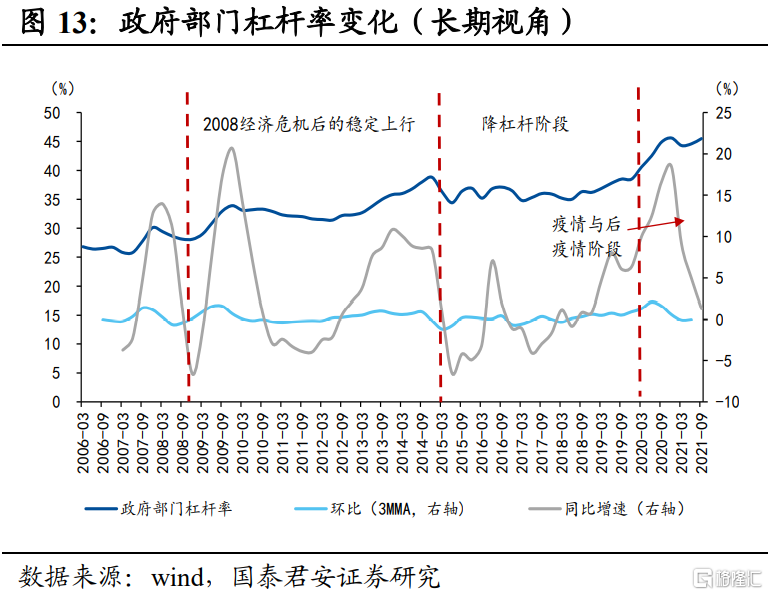 4.2 總體尾部階段,政府部門2022年可能率先進入債務的温和擴張