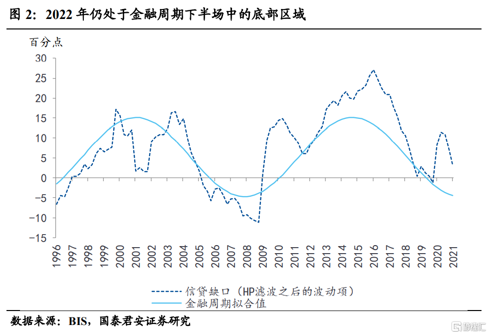 3)從金融週期時長和歷史運行規律判斷,我們預計2022年仍大概率是最近一輪金融週期下行期的底部區域,新一輪的擴張在2022年底孕育,在2023年有望繼續上行。