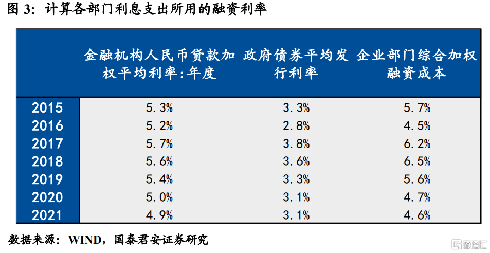 3)居民部門:直接使用信貸部分使用金融機構人民幣貸款加權平均利率四季度均值作為年度利率(2021為前三季度)作為居民部門的綜合融資成本。