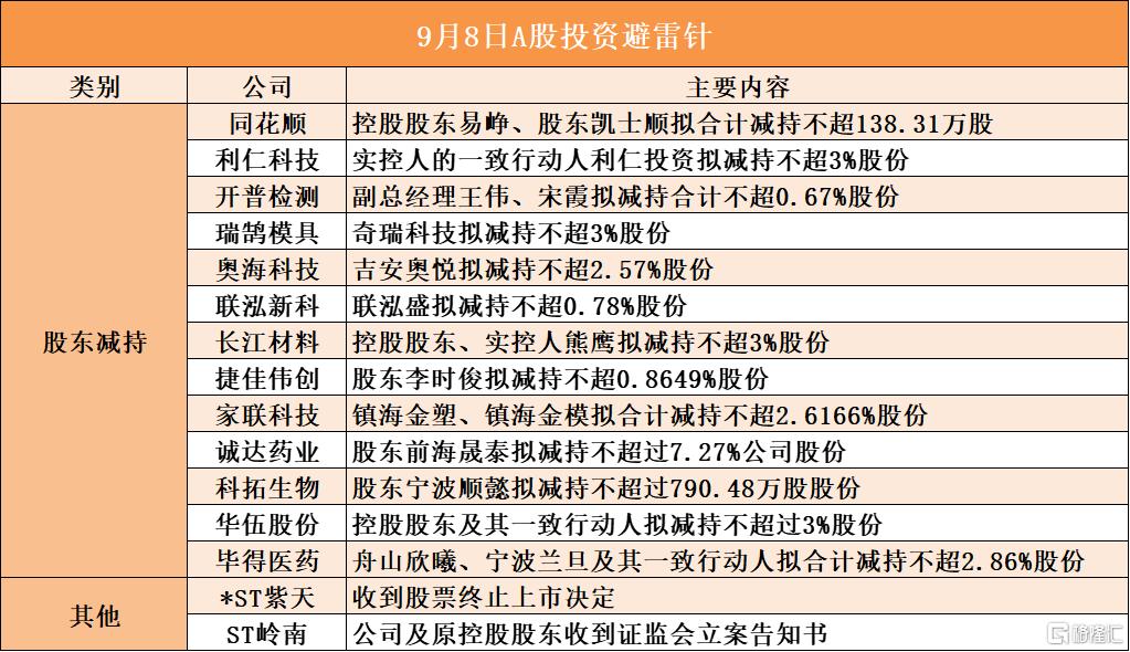 9月8日A股投資避雷針︱*ST紫天:收到股票終止上市決定;ST嶺南:公司及原控股股東收到證監會立案告知書